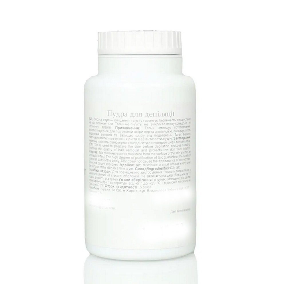 Наносити тальк на очищену шкіру перед процедурою депіляції тонким рівномірним шаром. При необхідності слід використовувати тальк і під час процедури, додаючи невелику кількість на відкриті ділянки шкіри.
